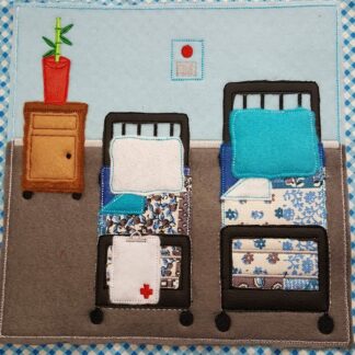 This is an 8×8 children’s hospital room quiet book page, the 2nd in the medical series to help children cope with having to go to hospital.