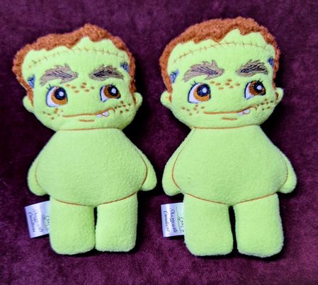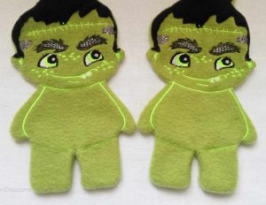 These chubby animals are stitched completely iin a single hooping – Frankie can be stitched with or without hair, just skip the hair if you want to have him without hair.