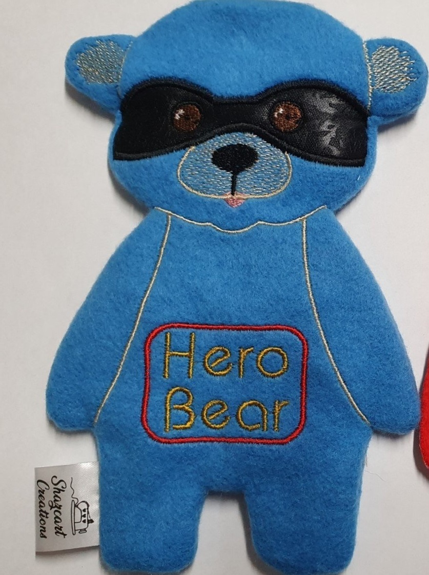 ITH Little Bear Hero 2 to a hoop 7.5×11 (single hooping) colour sorted (slightly larger than 5×7) with top opening, allowing for easy turning and stuffing.