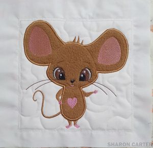 ITH Little Mouse applique quilt panel (block) 8×8 – collect all the panels and put them together to make a gorgeous baby gift.