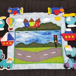 This is an interactive page, add felties to the correct place and glide o.n the road, sail on the sea or fly in the sky.